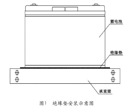 數(shù)據(jù)中心安裝絕緣墊是最簡(jiǎn)單有效地防止高功率鉛酸蓄電池短路的一種方法,其一般放置在電池和電池架承重梁的中間,通過在電池底部增加絕緣墊的方法,使電池漏液產(chǎn)生的電解液堆積于絕緣墊上,而不是電池架上,防止電池漏液流出的腐蝕性液體與電池底部的金屬架間導(dǎo)通引起電氣短路,安裝示意圖如圖1所示。