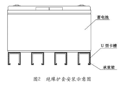 在電池抗震鐵架每層鐵架構(gòu)件(承重梁)與電池殼體接觸部分上襯以塑料絕緣護(hù)套,將金屬承重梁全包裹,如圖2所示,其作用就是將電池與金屬電池架之間隔開,防止漏下的腐蝕性液體將電池與架間導(dǎo)通,發(fā)生電氣短路。絕緣護(hù)套也可以叫做U型卡槽或承重梁護(hù)套,一般設(shè)計(jì)成U形卡在電池承重梁上。材質(zhì)選阻燃PVC、ABS或PP等塑料材質(zhì),光滑、耐磨、抗壓力好,安裝方便。且不影響電池上下層通風(fēng)散熱。缺點(diǎn)是不能承接液體,液體量大會(huì)流到下層電池上產(chǎn)生腐蝕。絕緣護(hù)套需要根據(jù)承重梁形狀專門定制開塑料模具。