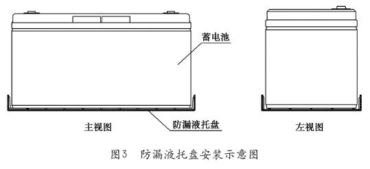 該措施實(shí)施方便,對(duì)于立式安裝的電池具有一定作用,但也有局限性:一是若電池漏液量大,絕緣墊也不能完全承接所有液體,液體流到下層架子或電池上,造成架子腐蝕以及電氣短路;二是電池為臥式安裝時(shí),由于絕緣墊只覆蓋電池部分面積,無法覆蓋到電池蓋與極柱范圍,電池漏液產(chǎn)生的酸液滴漏到下層電池及電池架上,造成架子腐蝕以及電氣短路;三是絕緣墊整張鋪設(shè),不利于上下層電池間散熱。